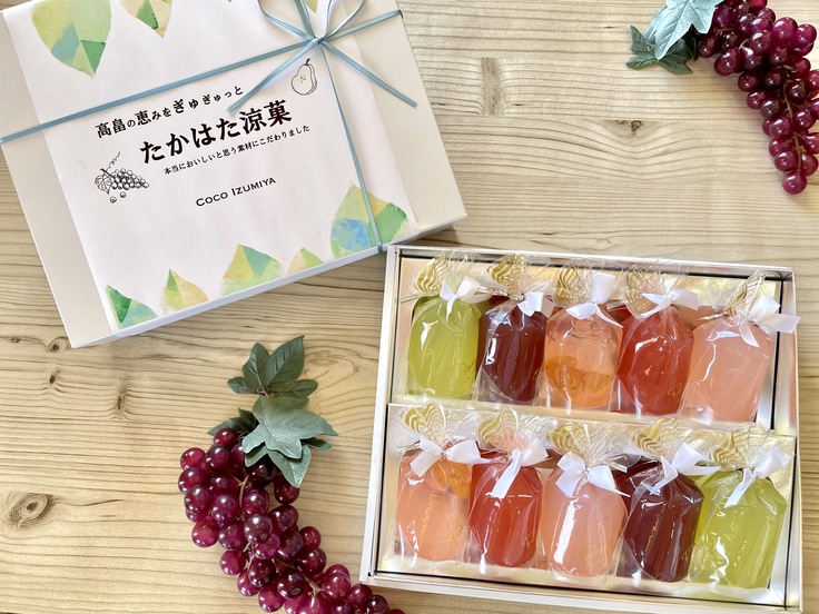 特に高畠産のデラウエアで作ったレーズンを使ったレーズンサンドが一番人気です。ぶどう、もも、ラフランス、りんご、さくらんぼ、秘伝豆、栗などを使ったケーキやゼリー、プリンなども作っています。