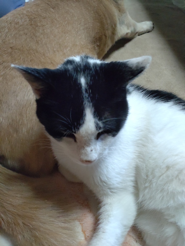 少しだけ触れていたいようです(*^_^*)お犬様が落ち着いていると、そっと近寄り少〜し触れる程度に…日中はゲージの中なので、やっぱり寂しいんでしょうね( ;∀;)お犬様も知っているのか、しばらくの間大人しくしてくれています(^^)中々、面と向かっては近寄らない…お互いに気遣っていて見ているこちらはその姿にホッコリしていますε-(´∀`*)ホッ