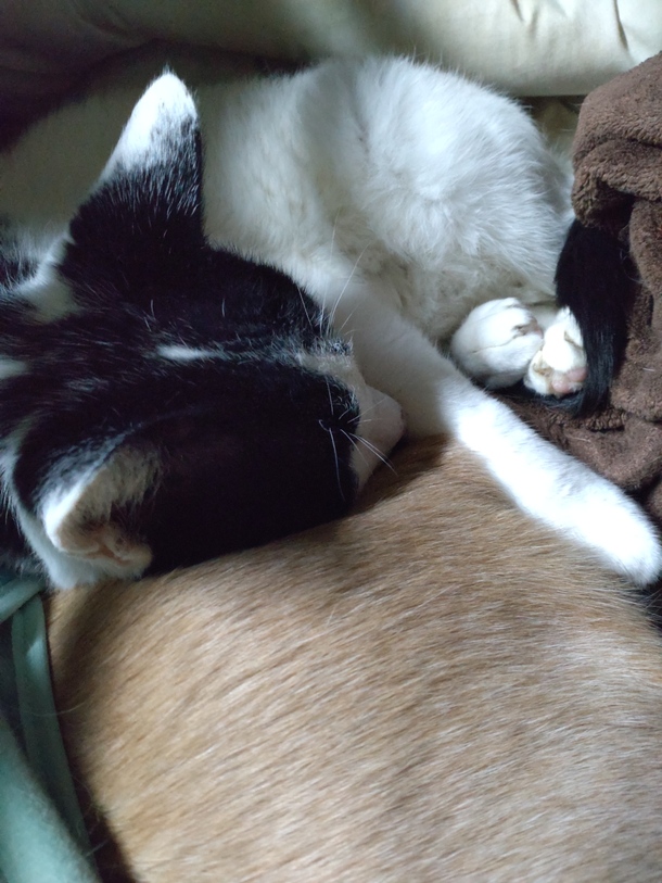 老犬と私の間にねじ込んでお座りになられました姫君。老犬尻/姫君/人間膝 この狭い間で居心地いいのでしょうか?笑