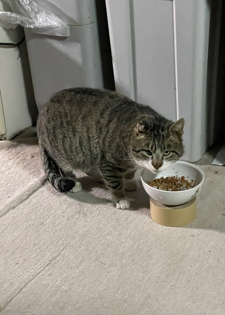 これをきっかけに、母猫とお父さん猫が桜を連れてくるようになり家の前で餌をあげていました。しかし、お父さん猫はもう4ヶ月ぐらい来ていないので、交通事故にでもあったのではないかと思っています。
