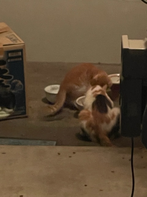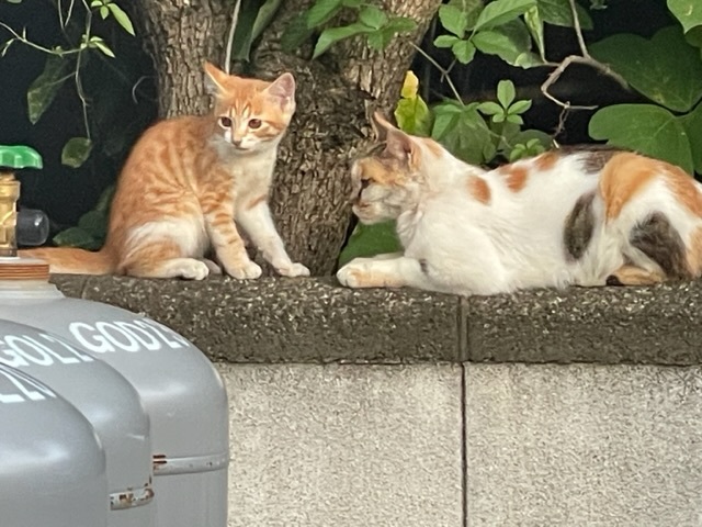 子猫桜はおもちゃで遊ぶようになりましたがお母さん猫は全然なつきません、警戒心120%です。