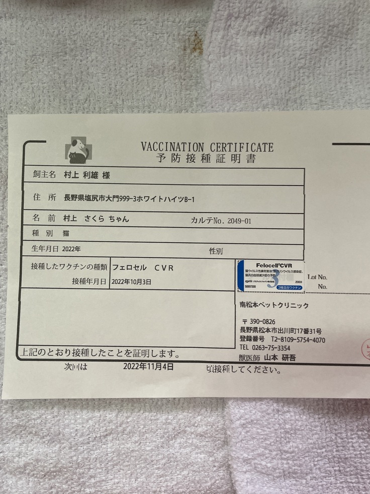 これからの飼育のプランは、信州は冬は寒いので、さくらは、はじめての冬になると思います。暖かくしてあげたいので、子猫用のこたつは買ってあげたいと思っております。