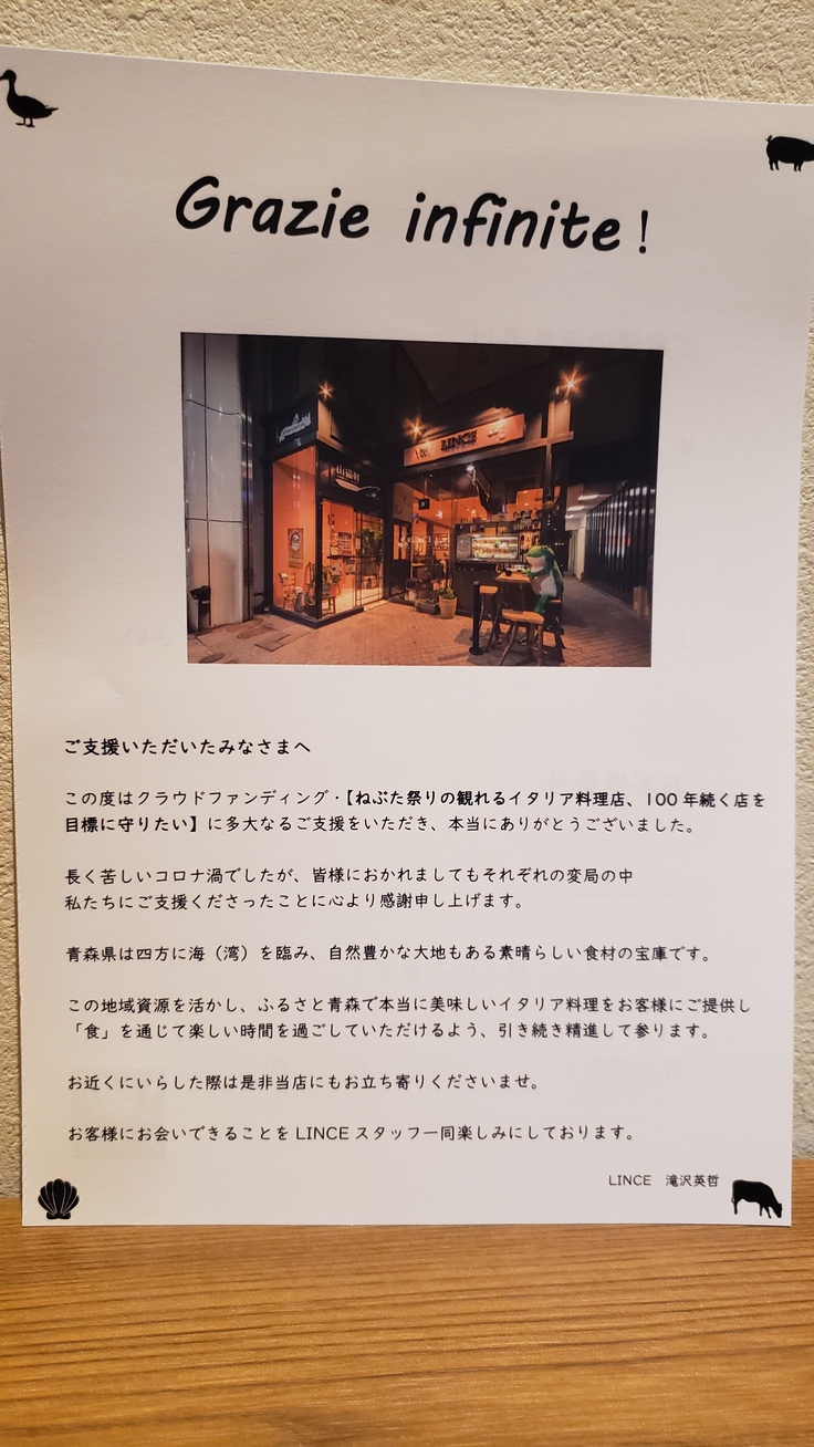 シェフ自筆で感謝の葉書を御送り致します。
