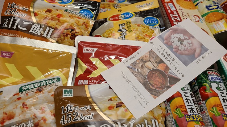 現在、国内のフードバンク様、国の災害備蓄品有効活用プロジェクト、公益社団法人日本非常食推進機構様等より食品の提供を受け、てくてくぴあねっとのオープンチャットをご利用頂いている方の中からご希望される方に、不定期ではありますが、食品BOXをお届けしています!!