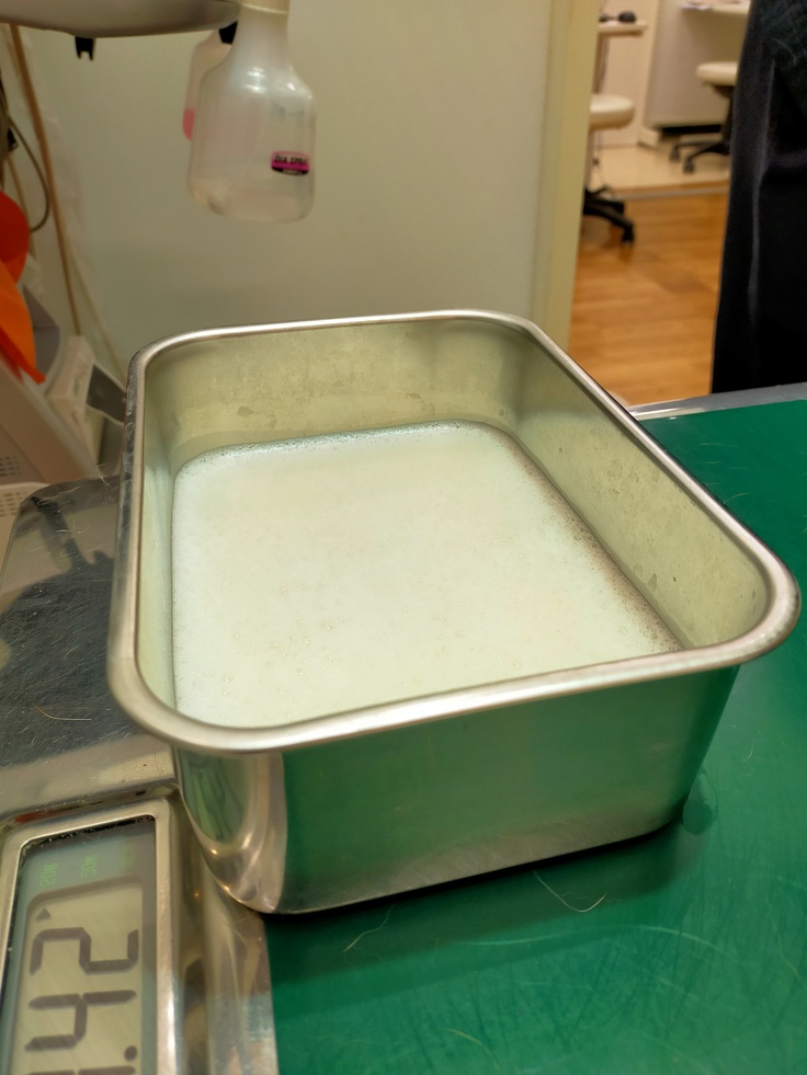 3週間の経過観察の間、9/4 約350cc、9/10 約360cc、9/16 約270ccのリンパ液を除去しました。