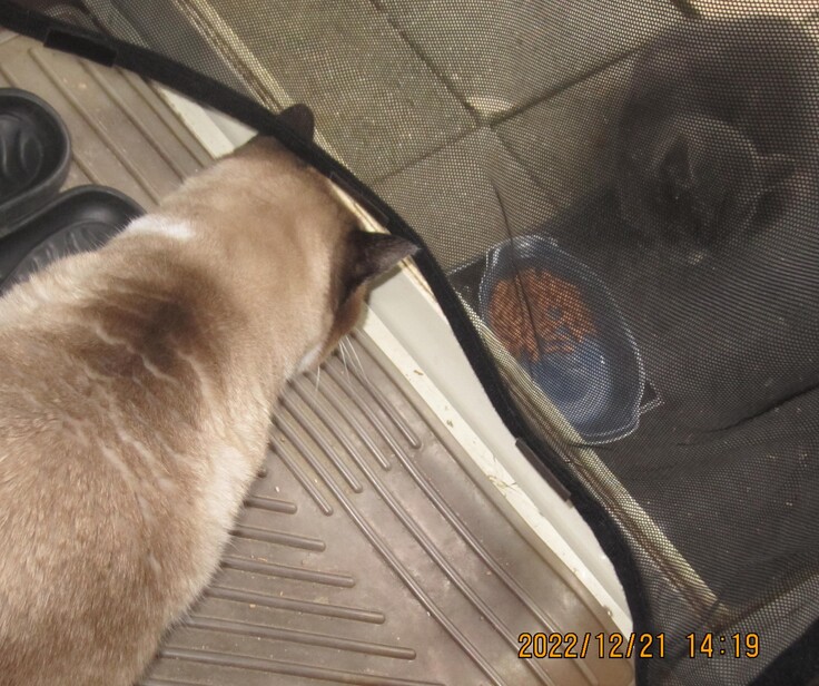 ・写真右側/保護前の様子。見知らぬ猫出現で