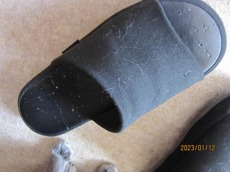 写真・新品スリッパが噛みキックでプチプチ状態(〈焦笑〉)