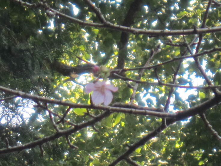 (庭の河津桜が一輪咲いてました(喜))