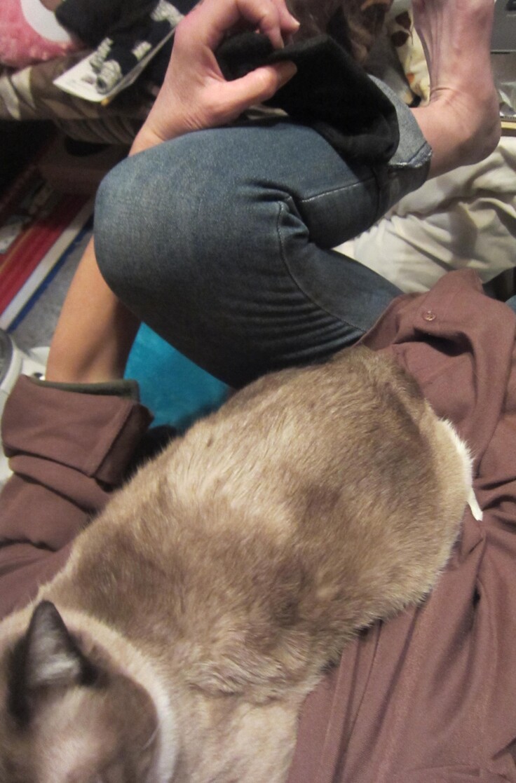 「ぽんちゃん」に乗られてしまい、動けない・履けない瞬間)