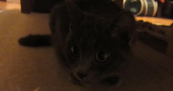 部屋に猫の沢山の洗濯物がぶら下がってる中、