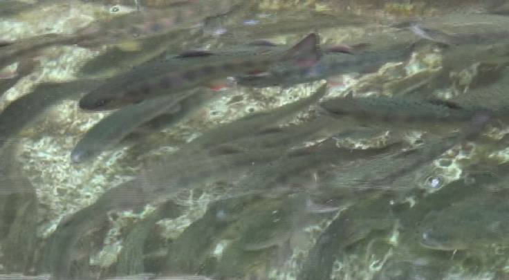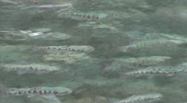 大股の養殖場は、とにかく水が清冽(せいれつ:清らかに澄んで冷たい)です。集落のそばを流れる大股川から引いており、養殖場より上流には国有林しかありません。そう。一件の民家も無く水を汚すものは何も無いのです。冷涼な気候なので真夏でも水温は十七〜十八度以下です。二十度以上では生きられないあまごにとって、またとない環境です。そうした水が絶え間なく流れ込む中で育ちます。