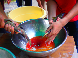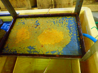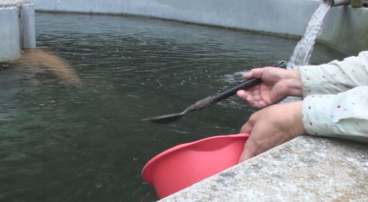 給餌や水の管理は当番を決めて行い、放流用に何百キロも出荷する時には、午前四時、五時といった早朝に全戸、養殖池に集合して作業に当たります。