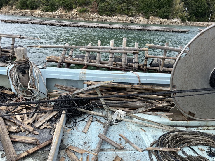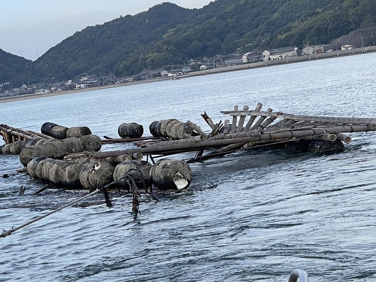 台風でいかだが真っ二つに壊れ、養殖されていた牡蠣(かき)も流されてしまいました。