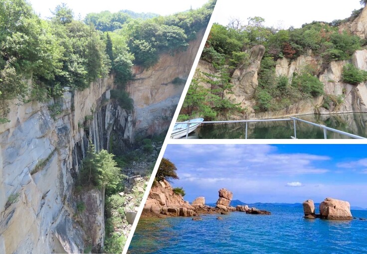 岡山県では珍しい有人の島が7つあり、笠岡諸島と呼ばれています。笠岡諸島の中で一番大きな島「北木島」では、石の丁場、奇岩などの壮大な景色が堪能できます。