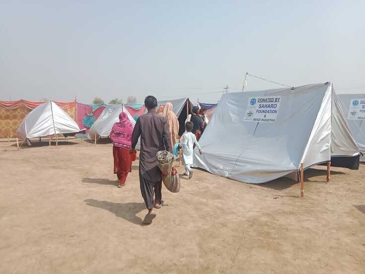 READが被災者のために設置したキャンプでは現在50家族、約250人が暮らしています。その半数は子どもたちです。大半の住民は農業や日雇い労働で生計を立てています。自宅が損壊したほか、農地が壊滅的な被害を受けたため、生計に深刻な影響が出ています。なかには男性のみ都市部(ハイダラバード、ナワブシャーなど)へ労働のために出かけ、キャンプには女性と子どものみ残っているケースもあるそうです。