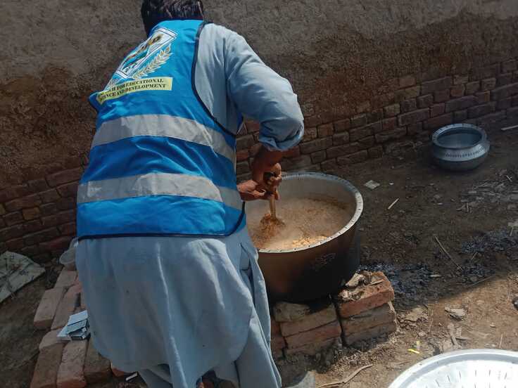 READは、ナワブシャーに事務所を持っていますが、そこでは4人のスタッフが働いています。ほぼ毎日キャンプに通い、被災者のニーズを確認したり、支援物資を届ける日々です。またテントでは調理できないため、キャンプ全体に提供するため、炊き出しをして一日2回温かい食事を提供しています。
