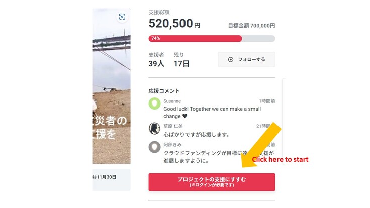 Below is how you can donate by using your credit card. Unfortunately, this crowdfunding system is available in Japanese only.