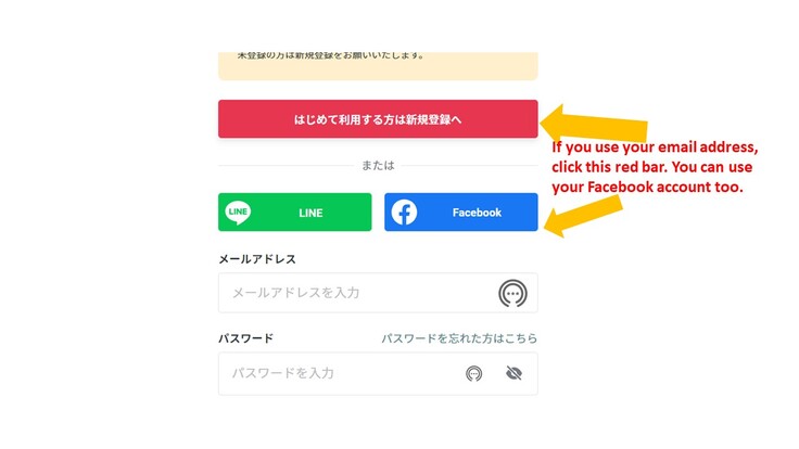 2. You need to register by using your email account by clicking the red banner. Alternatively you can register with your Facebook account.
