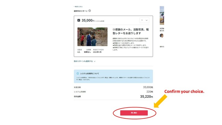 5. After you make a choice, please confirm by clicking the red banner (the exmaple shown below is for JPY 35,000).
