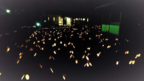 武家屋敷にもたくさんの竹灯籠が飾られ、
