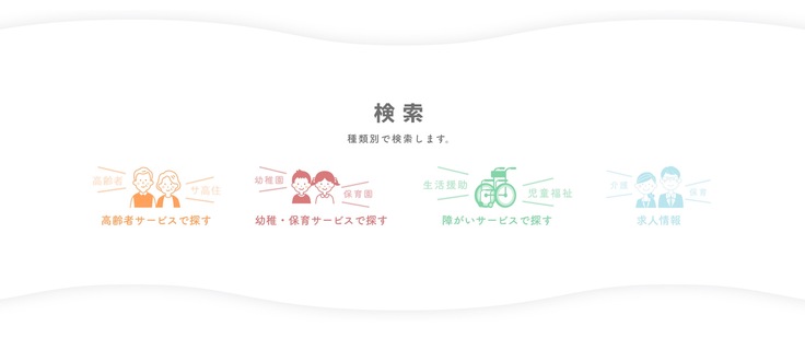 現在、高齢・保育・障害の検索ページに加え、掲載事業所の求人情報が公開されています。今後、検索システムの導入から求人情報掲載のシステム部分、主に、職業紹介の部分を許可が取れ次第行っていきます。また、会員登録・マイページの紐付け・制作を行ってまいります。