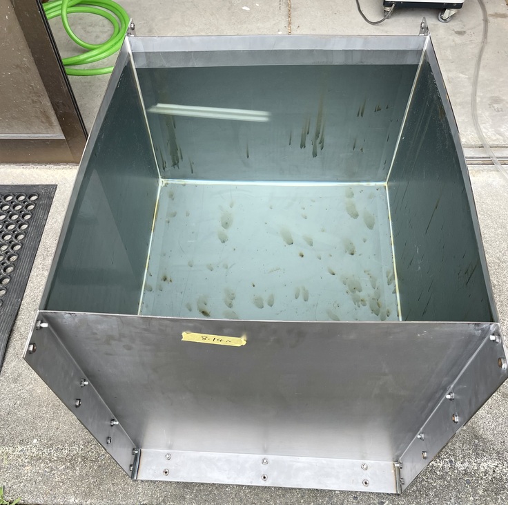 今回、やっとステンレス本体をノックダウン化し、且つ漏水試験もクリアしました事、それも実際使用するステン素材より柔らかいt1.5スチール板(一部折り曲げ加工有り)による試験結果でした。