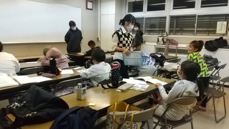 私たち大学生を含む31名がボランティアとしてこどもたちの勉強のサポートをしています。現在30名の子どもたちが学習をしに来てくれています。