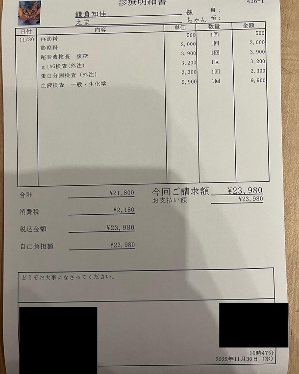 投薬中、おそらくあと2回or3回こちらの費用がかかる予定です!