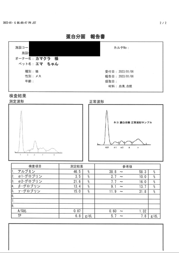 血液検査では延長もあるような言い方でしたが、蛋白分画を送ったところ