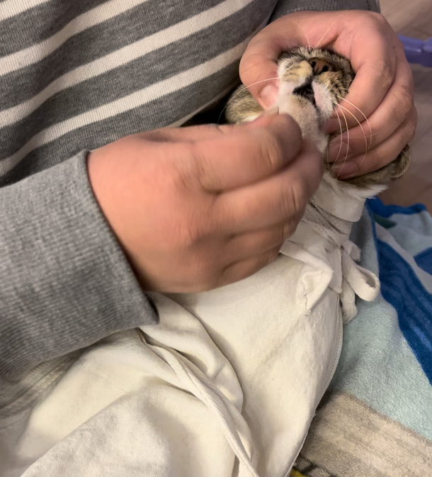 保定袋も貸して頂き、そこからお口への直接投薬ができるようになりました💊
