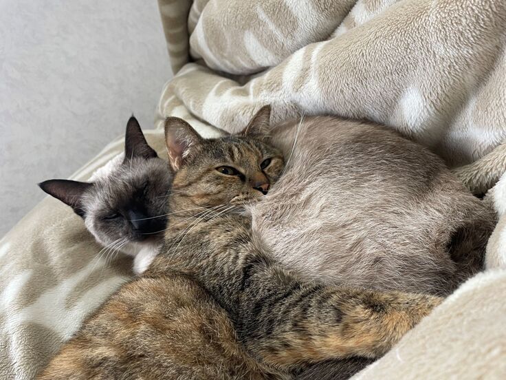 治療のおかげで最近はたむの行動範囲が広がり、活動的な時間が増え、もじゃ子といつも一緒じゃない時間も増えてきましたが、1日1回はおやすみタイムを必ずたむ&もじゃ子ショットを見せつけてくれます♡
