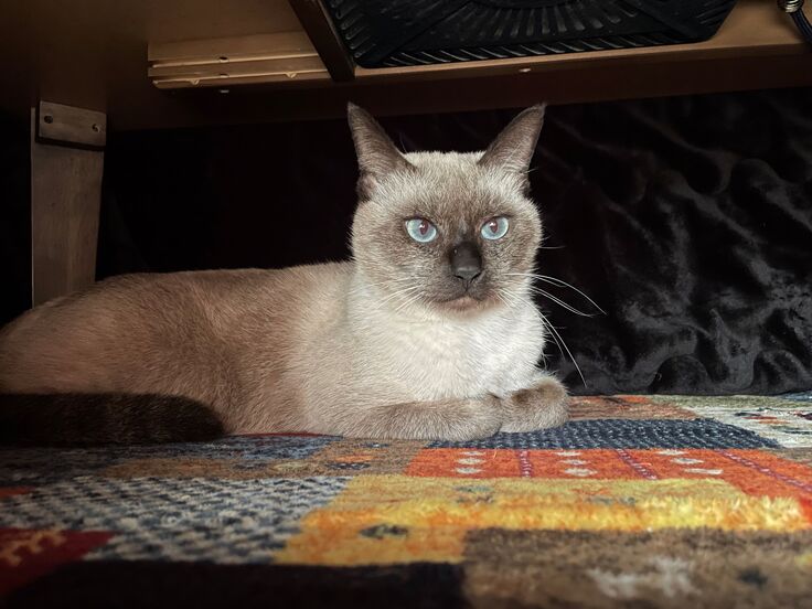いきなりこたつを覗いたので、ちょっと不機嫌な表情のたむ🐈