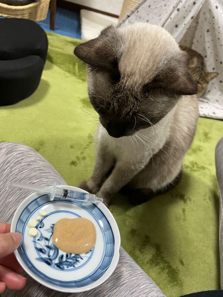 眠たい目をしながらお薬スタンバイをしてくれるたむは本当にスゴイ子です👏✨!!