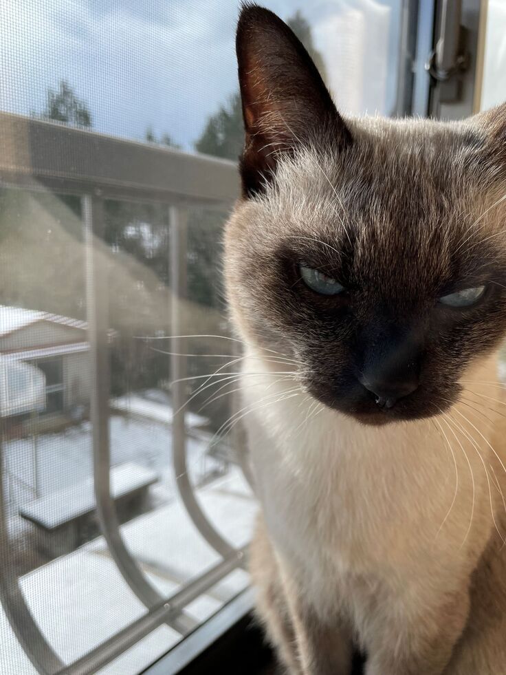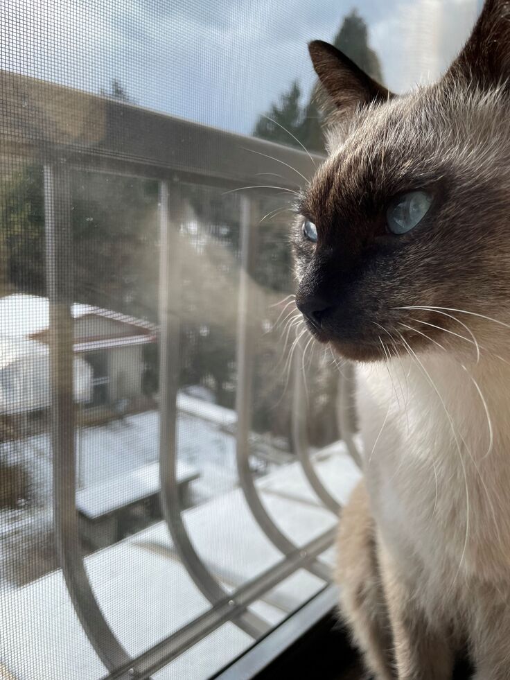 たむも久しぶりに見る雪に、窓辺からじっと外を観察していました。