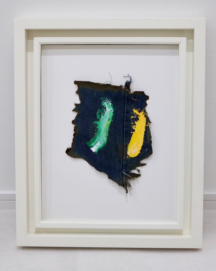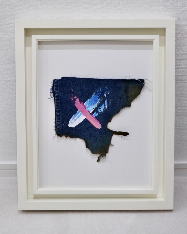 それに加えてファッション業界は大量のCO2を排出するため、近年ではファッション業界が原因の環境汚染が深刻化しています。 着なくなったデニムをバーナーで加工し、ペイントすることで、ファッション業界のCO2による環境汚染・そこから生まれる人権問題や賃金問題を象徴すると対称に、色鮮やかな色でファッションの楽しさ・洋服を着ることの楽しさを表現する作品となっています。