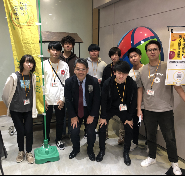 八尾未来創造員会とは『八尾にある大学』と『八尾にある企業』の産学連携事業で八尾の未来のために地域の特産物や文化を通して様々な業界を盛り上げて地域貢献活動しています。