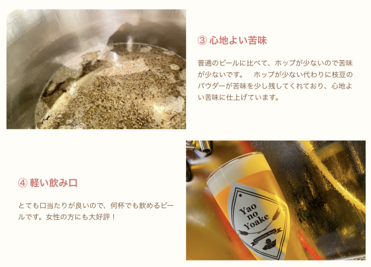 また、ビール以外の新商品の開発にも力を入れています。八尾市のジェラートのモンテローザさんと協働し、枝豆ジェラートを作る予定です。
