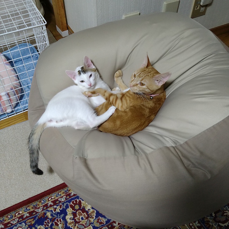 今年の3月、譲渡会で迎え入れたあんの妹か弟を家族に迎え入れようと思っていたところ、6月にアンの保護主さんから、3ヶ月のレンを紹介していただき、人懐こいレンを迷うことなく、家族として迎えることにしました。