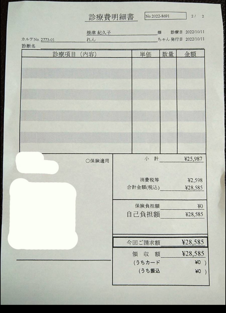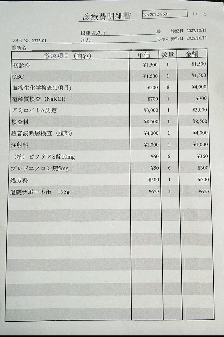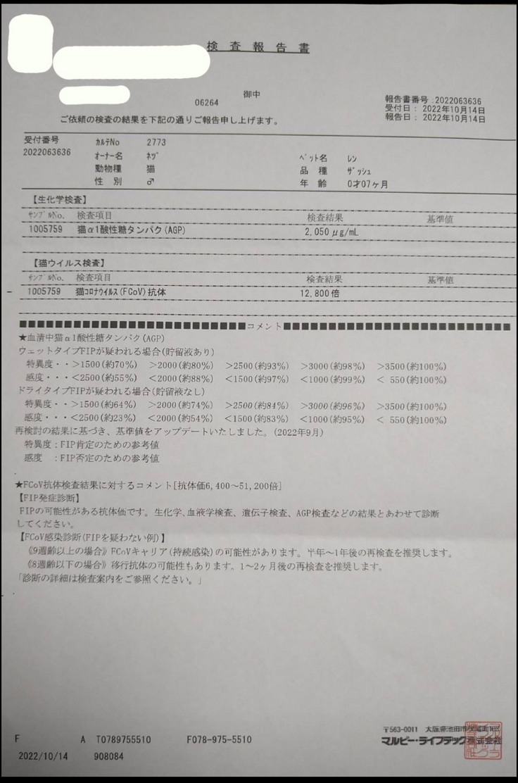 - 今後治療するFIP薬代明細書 12月中旬頃に取得予定