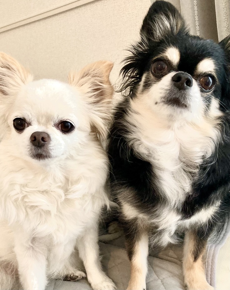 左:母犬のモカ(10)、右:息子のココ(9)です。