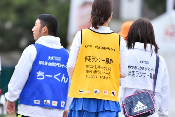 ゴール達成したばかりなのですが、NEXT GOAL への挑戦をさせていただくことになりました。ぽっかぽかランナーズでは、人がたくさん集まるマラソン大会に参加し、障がいのある人とない人が一緒に走ることで、「共存共生の社会を目指す」ことへの啓発を行っています。その助けになりますように、お揃いのビブスとウインドブレ-カ-を伴走ランナー・障がい者ランナ-・障がい者ランナ-のご家族へ貸出しています。