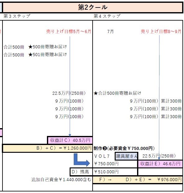 ●第2クールの収支計画は下の通りです。