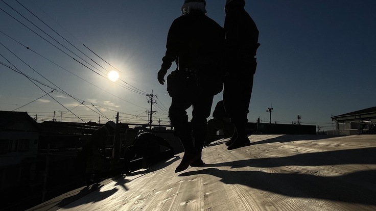青空の下、職人さんたちが気持ちよく働いています。