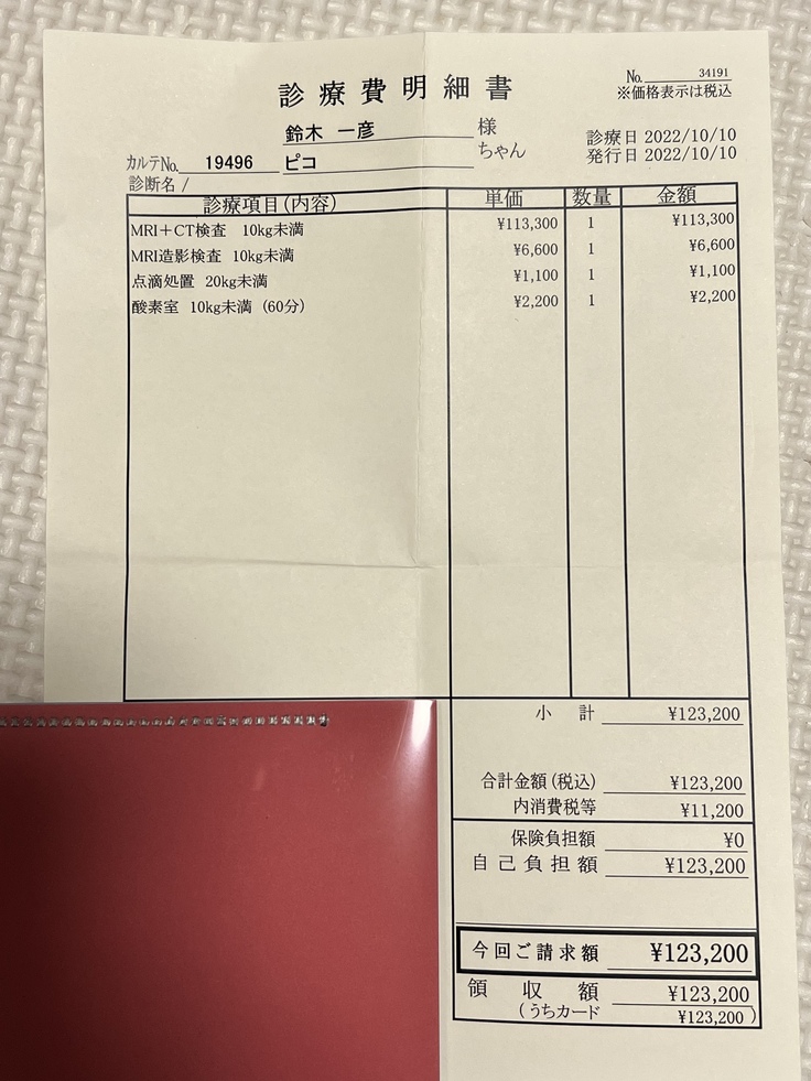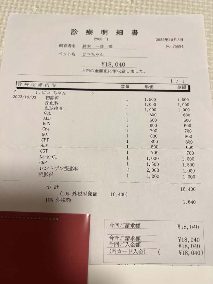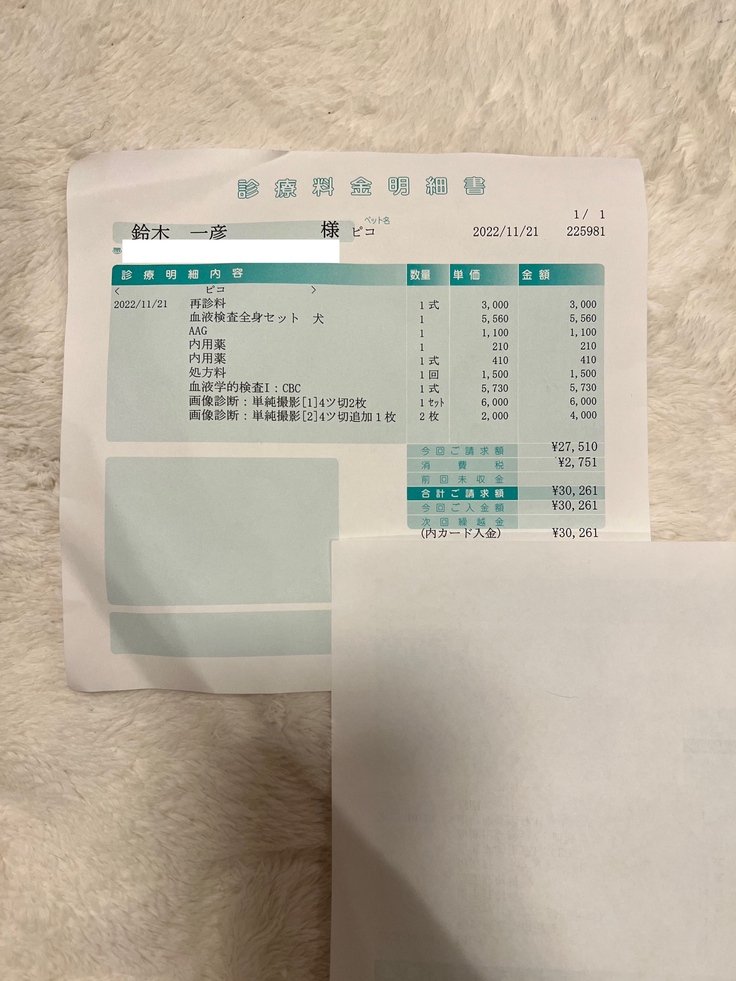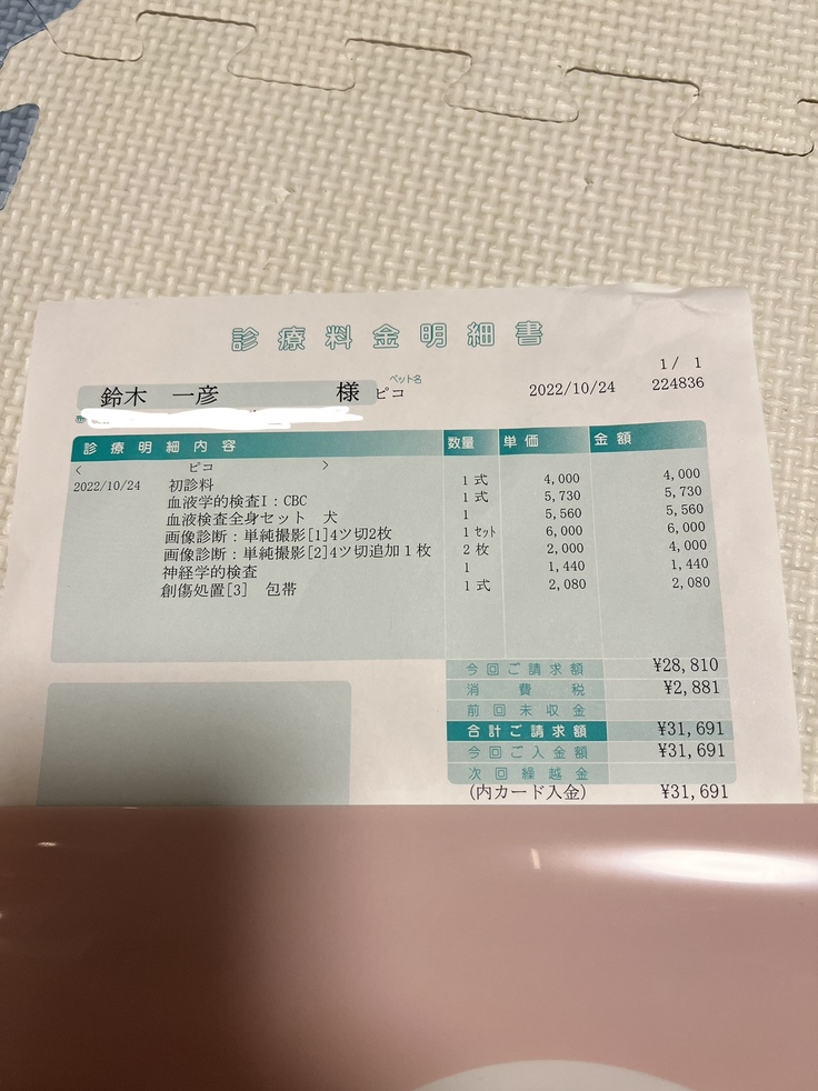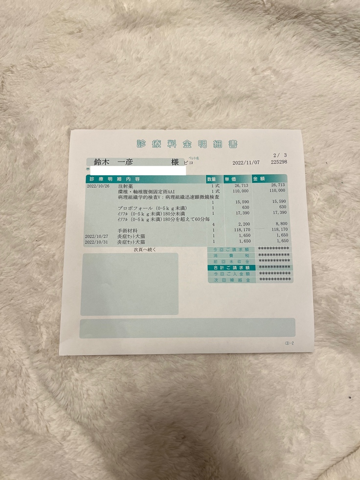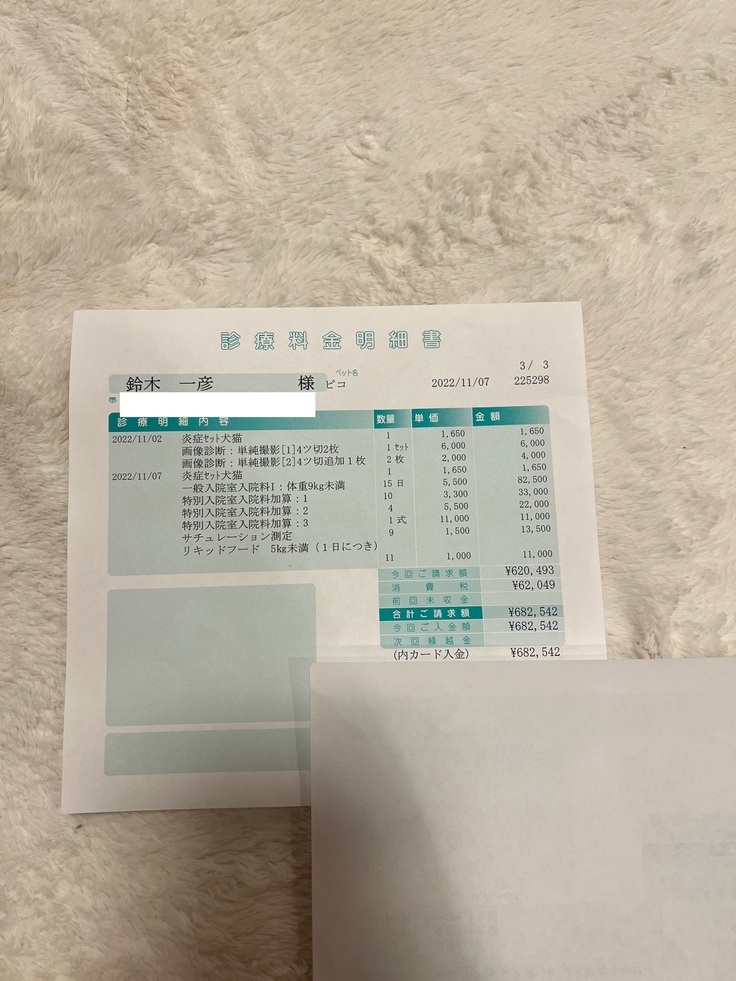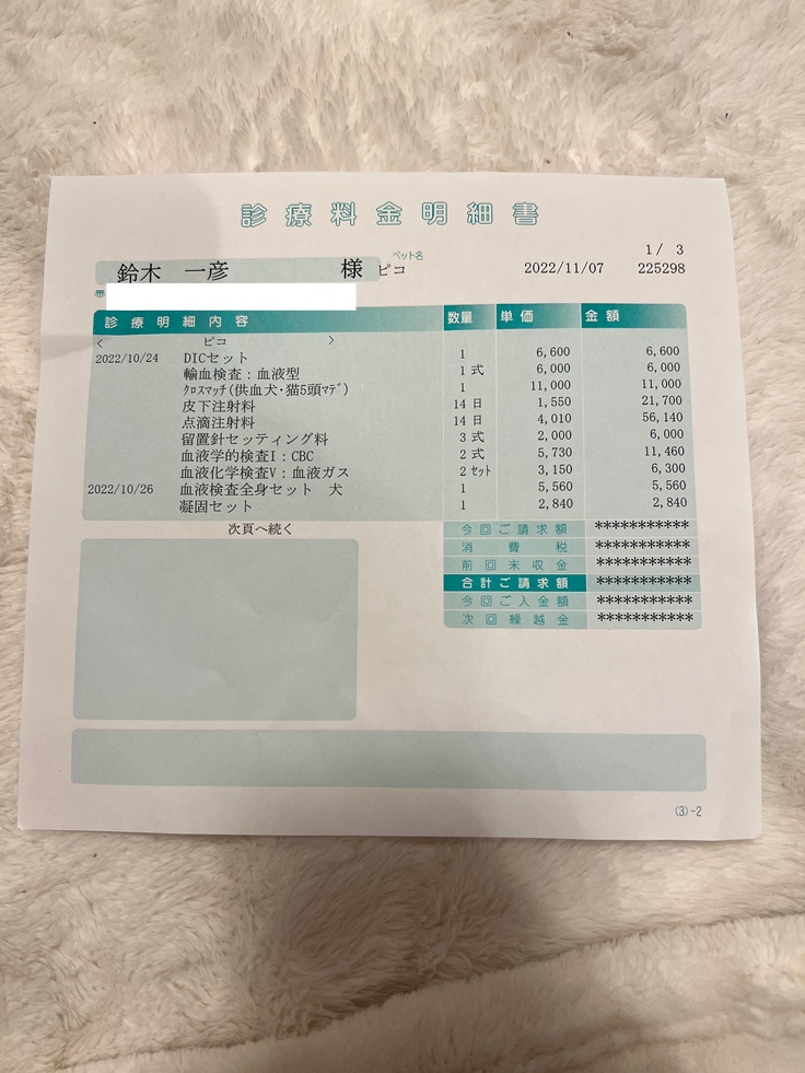 (病院名は伏せさせて頂きます。動物病院から掲載許可を得ています。)