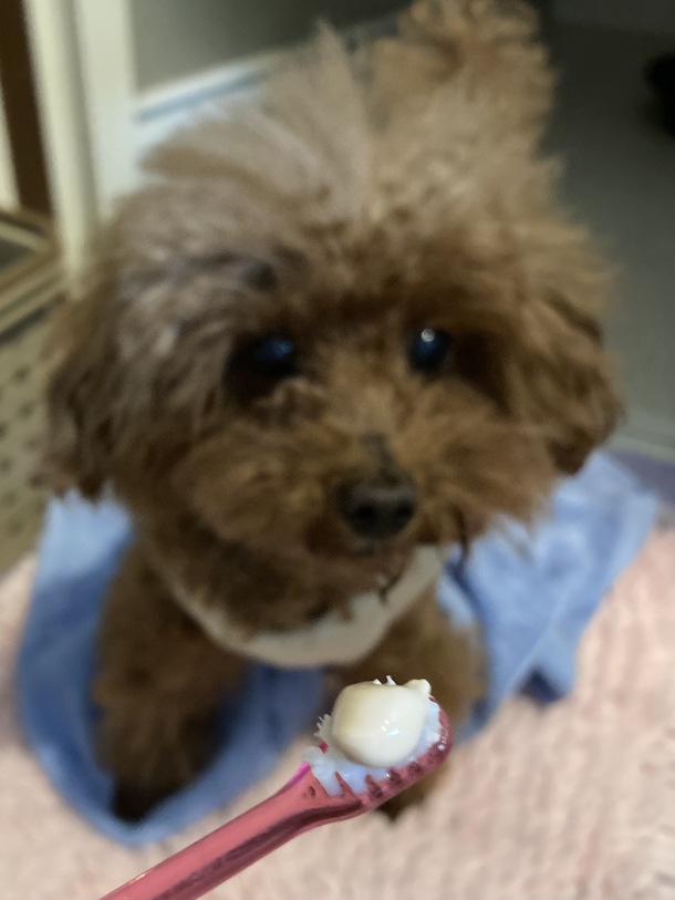 歯茎に当たらない様に指でカバーしながら慎重に🪥