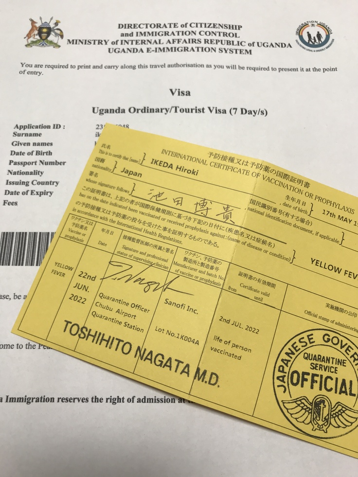 ウガンダ渡航には黄熱病対策のワクチン接種が必要です。