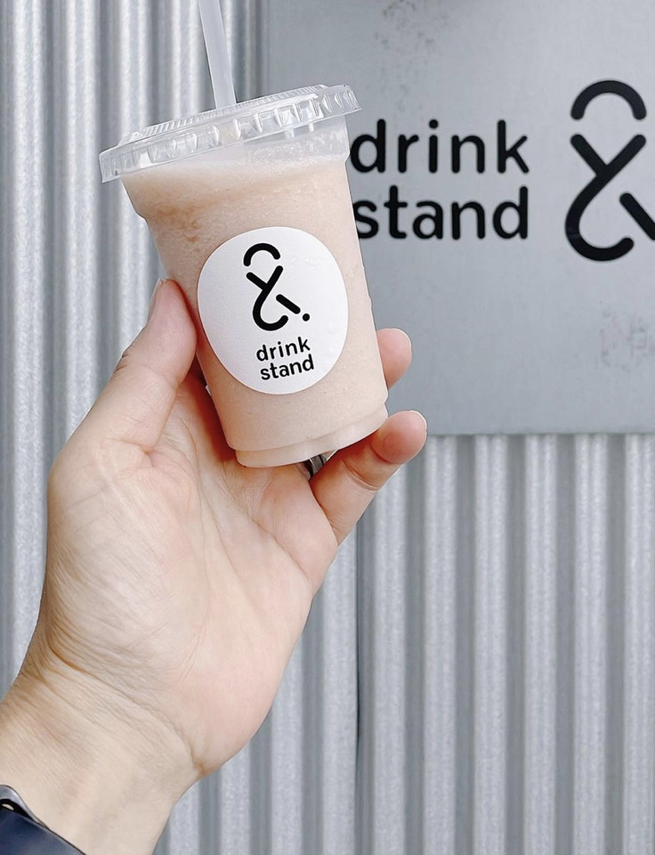 目を引く素敵な建物の中でスムージーなどドリンクを提供している