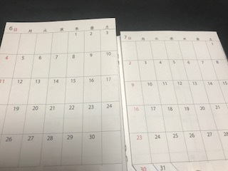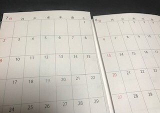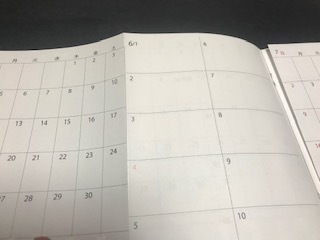 つまり最初の見開きが5月と6月であれば、ぺージをめくると6月と7月の見開きページが現れ