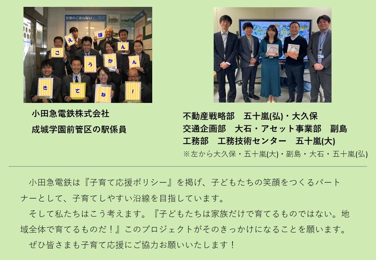 そんな経堂駅でみなさまの子育てパートナーとしてこのプロジェクトに取り組み、沿線にこどもの笑顔を増やす第一歩を踏み出したいと考えました!