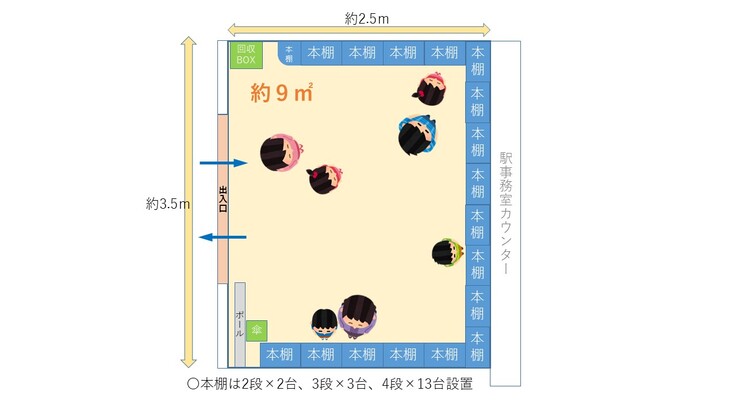 絵本と絵本を交換できるスペースを駅の一画へ設置するプロジェクトです。